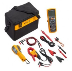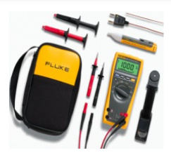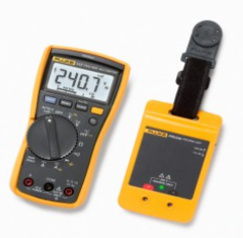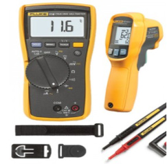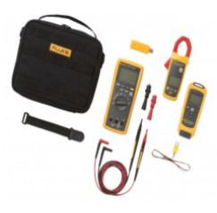 The Fluke Connect HVAC/R Kit includes the 3000 FC Multimeter, AC current clamp module. temperature module and accessories.
